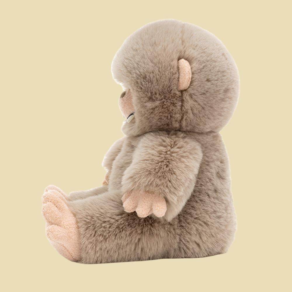 Meet Bo Bigfoot, the friendly guardian of the forest! With his long mocha fur in fluffy tufts and cozy pink towelling feet adorned with bobble toes, this sasquatch is anything but shy. Bo features gentle suedette fangs and a chunky face that peeks out from all that fuzz. He’s not only a delightful picnic companion but also the perfect buddy to snooze with under the trees!