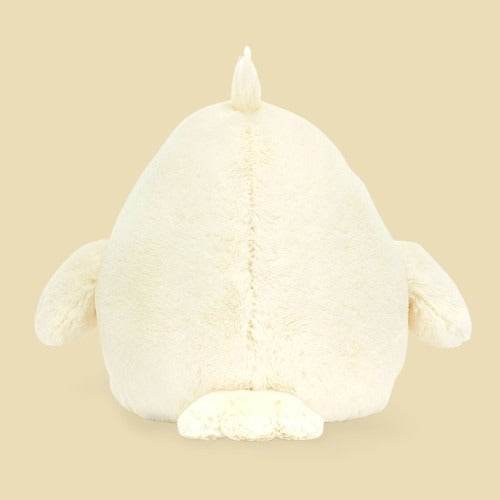 Waddle over to the pond and meet Delia Duck—a delightfully downcast duck with charm to spare. With ultra-soft cream fur, a fluffy tuft of hair, and little wide wings perfect for flapping (or flopping), Delia isn’t here to quack for crumbs. Her bright orange feet and pouty beak give her that irresistibly grumpy expression—but don’t be fooled, she’s all about the cuddles.