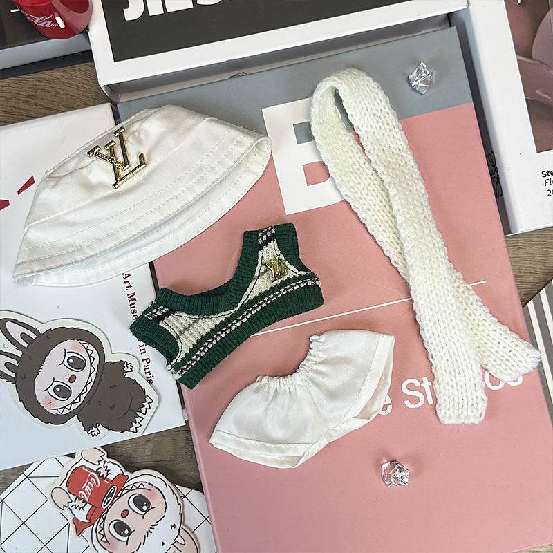 Includes bucket hat + sweater + scarf + pants. Designer-inspired details and seasonal textures make this set perfect for Labubu collectors seeking luxury aesthetics and layered flair.
